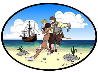 Squanto spent nine years in England, acquiring many new skills. Finally, he was allowed to return to his home across the ocean. Unbelievably, he was kidnapped a second time by a ship captain. This man was a slaver. He tricked Squanto and 19 other Patuxet Indians, pretending he wanted to bargain with them. Instead they were captured, put into iron chains, and taken to Spain. Each was sold for $1,400.00. Squanto was bought and rescued by Catholic priests, and introduced to the Christian faith.